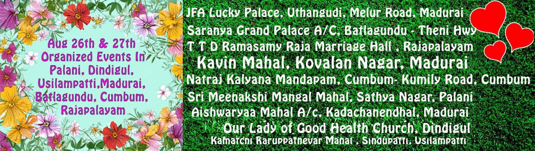 Aug 26th Evening & 27th Morning Events Organized in Palani, Dindigul, Usilampatti, Madurai, Batlagundu, Cumbum, Rajapalayam