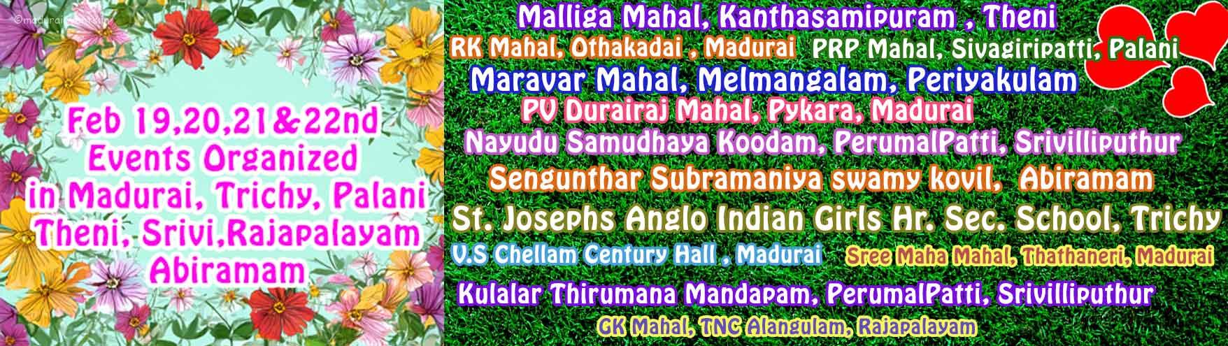 Feb 19,20,21 & 22 Events Organized in Madurai, Theni, Abiramam, Rajapalayam, Srivilliputhur, Trichy & Palani