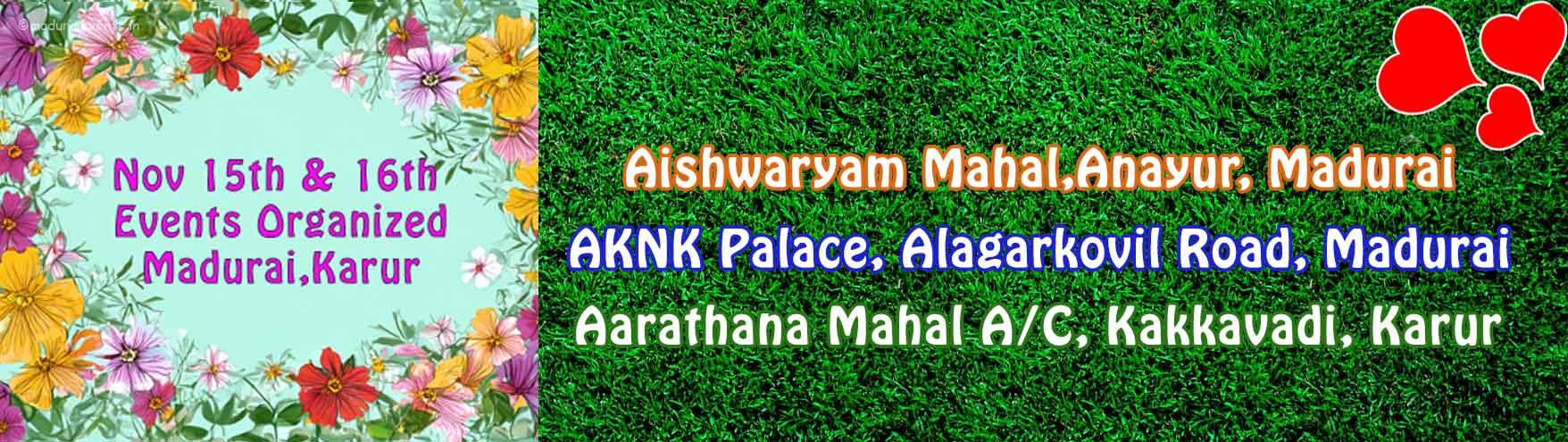 Madurai Events Organized multiple events in Madurai & Karur on Nov 15th & 16th. Events like Mehndi, 90s kids stall, Iyer, welcome_girls, Bouncers , Cold Pyro, Chocolate 🍫 Fountains, Javvumittai, Beeda, Icecream, Balloon sculpting, stick balloons, flower chadar, car decoration, popcorn, Paani poori, Umbrella, Luxury Audi Car, Wedding Open Car organized by Madurai Events.