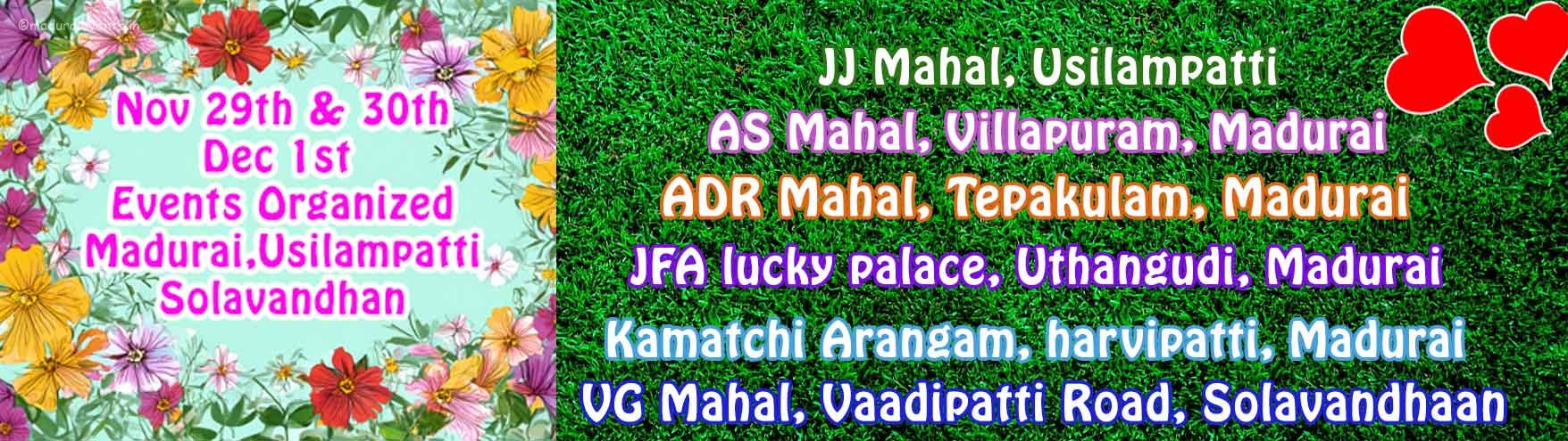 Nov 29th,30th & Dec 1st Events Organized in Madurai, Solavandhan, Usilampatti