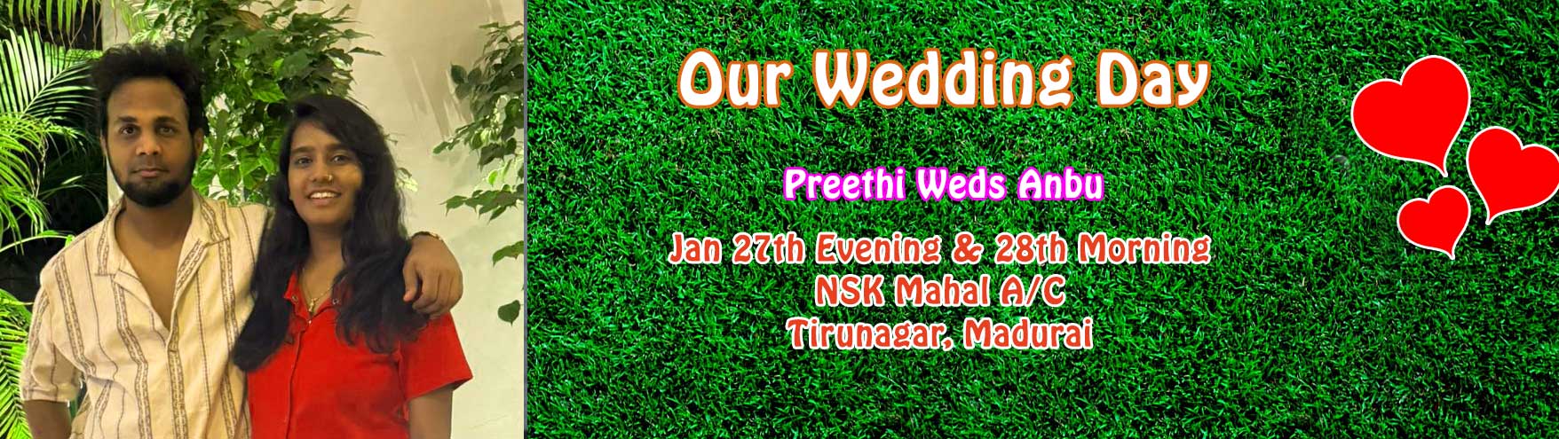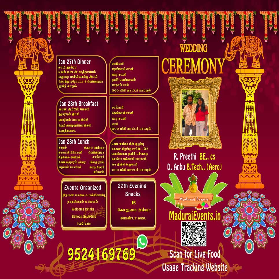 Preethi ♥ Anbu wedding organized by Madurai events at NSK Mahal, Madurai on Jan 27th & 28th. Events like Catering, Live counter stalls, Nadaswaram 🥁, 🌸 Garlands 🌸 Balloons sculpting🎈 Ice cream 🍨 Welcome Drinks 🎎 organized by Madurai Events.